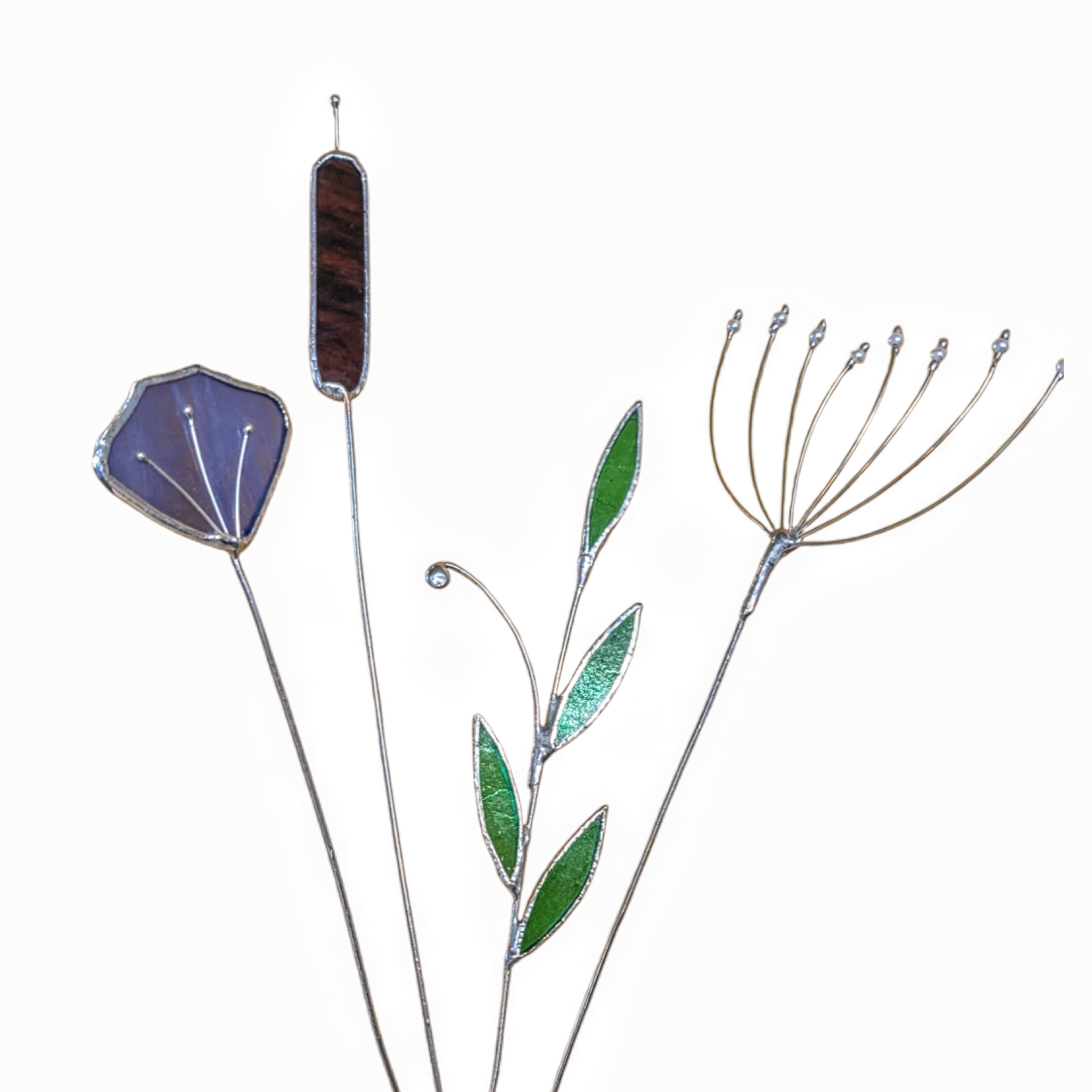 4 Hand-made Stained Glass bouquet picks by Deb's Broken Glass