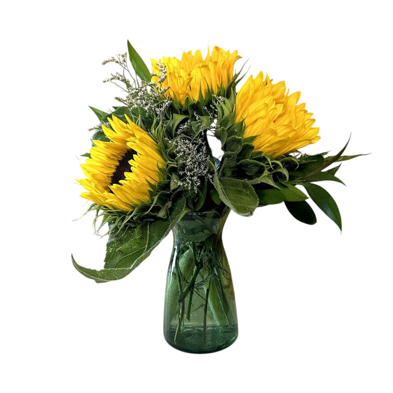 Arranged in a clear glass vase for a natural, relaxed look, this bouquet adds an instant burst of sunshine to any space—perfect for a desk, entry table, or cozy kitchen corner. Bright, uplifting, and beautifully simple, it’s a charming gift for celebrations, thank-yous, or just because.